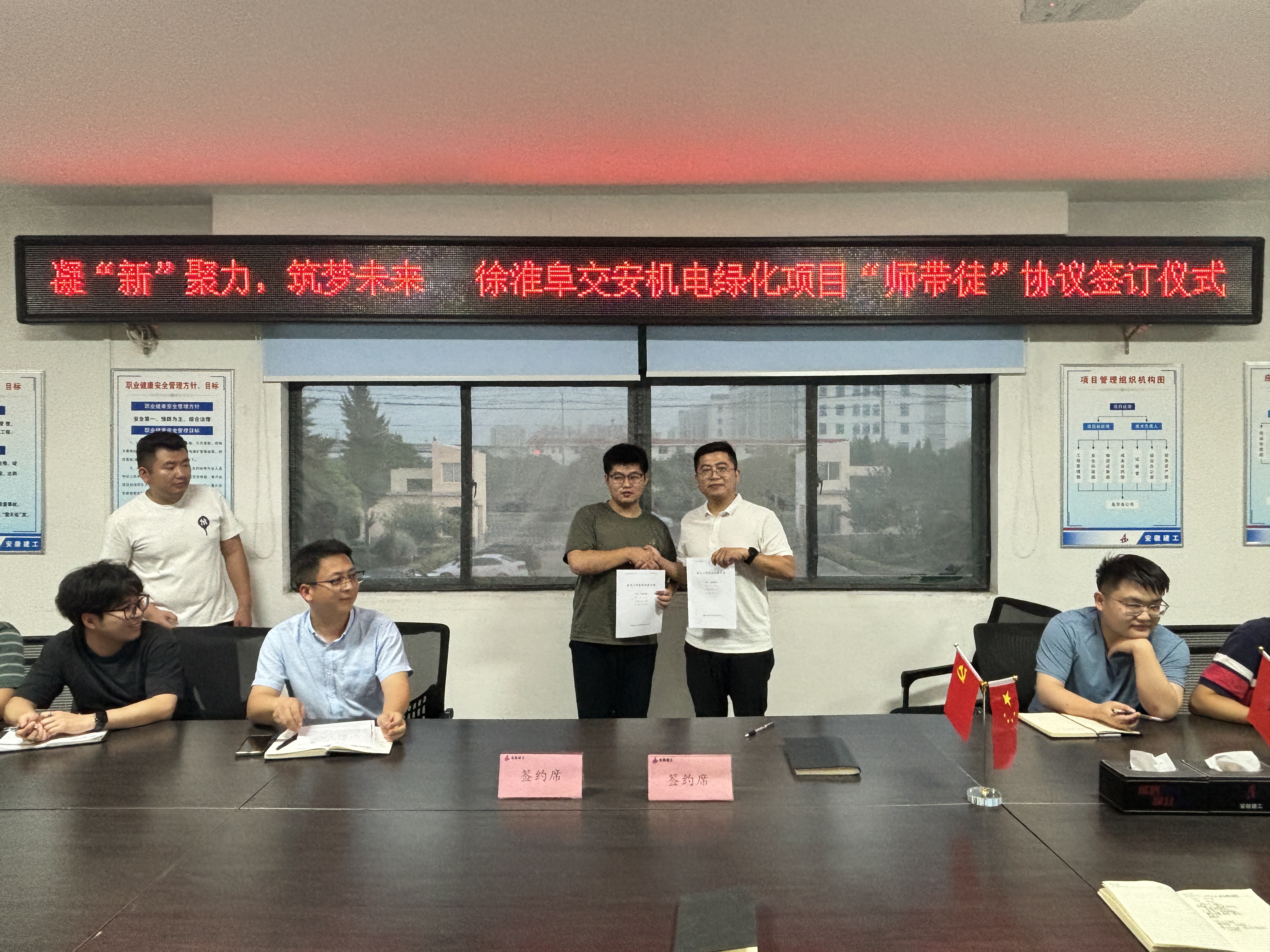 為幫助新員工深入了解公司發(fā)展戰(zhàn)略及經(jīng)營(yíng)模式,培養(yǎng)和樹立起良好的職業(yè)素養(yǎng),8月22日,徐淮阜交安機(jī)電綠化項(xiàng)目舉辦新員工座談會(huì)及“師帶徒”協(xié)議簽約儀式。