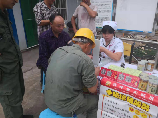 隨著人們的生活水平的不斷提高,飲食結(jié)構(gòu)發(fā)生變化,高血壓等心腦血管疾病的患病率逐年上升,對(duì)職工健康構(gòu)成了較大威脅,同時(shí)也不利于企業(yè)安全穩(wěn)定健康發(fā)展。據(jù)了解,河南寶豐項(xiàng)目工人年齡普遍在四、五十歲左右,正是心腦血管疾病和高血壓高發(fā)年齡段。因此,本次項(xiàng)目黨支部攜手張仲景大藥房開(kāi)展義診,為一線工人義務(wù)測(cè)量血壓并及時(shí)給予健康指導(dǎo)和咨詢,讓職工通過(guò)了解自己的血壓數(shù)值,對(duì)疾病早預(yù)防、早治療。