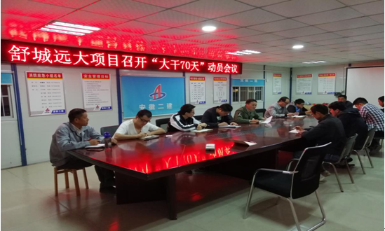 10日晚,為了響應(yīng)公司組織勞動競賽的號召,激發(fā)項(xiàng)目上下的生產(chǎn)熱情,達(dá)到并超越既定的生產(chǎn)目標(biāo),舒城遠(yuǎn)大項(xiàng)目部全體管理人員在會議室召開“大干70天”勞動競賽動員會議。