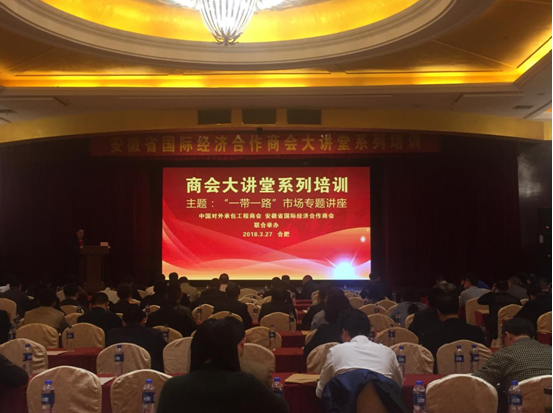 3月27日,安徽二建四分公司黨支部書記董建民等3人應(yīng)邀參加了在外經(jīng)戴斯酒店舉辦的安徽省國際經(jīng)濟合作商會大講堂系列培訓(xùn),本次培訓(xùn)由中國對外承包工程商會與安徽省國際經(jīng)濟合作商會聯(lián)合舉辦,此次培訓(xùn)為期兩天,以“一帶一路”市場為主題,近300人參加培訓(xùn)活動。