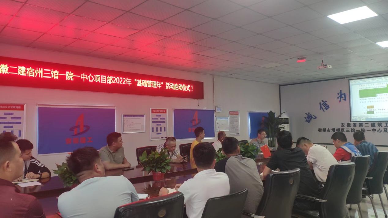 5月23日,第四分公司宿州三館一院一中心PPP項(xiàng)目在會議室舉辦了“基礎(chǔ)管理年”活動啟動儀式,項(xiàng)目全體管理人員參加。