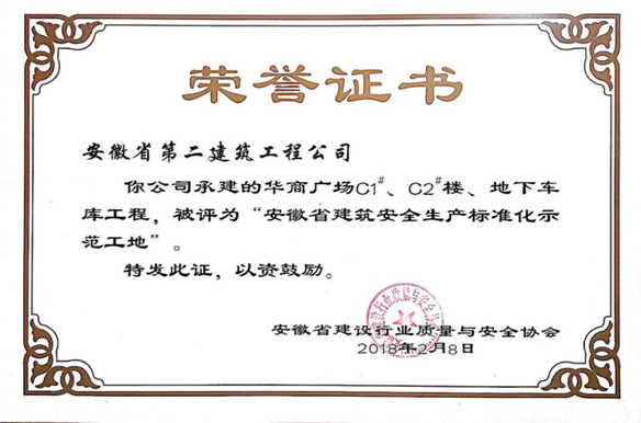 由三分公司承建的華商廣場(chǎng)C1、C2#樓、地下車庫項(xiàng)目與2018年2月8日正式被安徽省建設(shè)行業(yè)質(zhì)量與安全協(xié)會(huì)評(píng)為“安徽省建筑安全生產(chǎn)標(biāo)準(zhǔn)化示范工地”稱號(hào),近日正式授牌。
