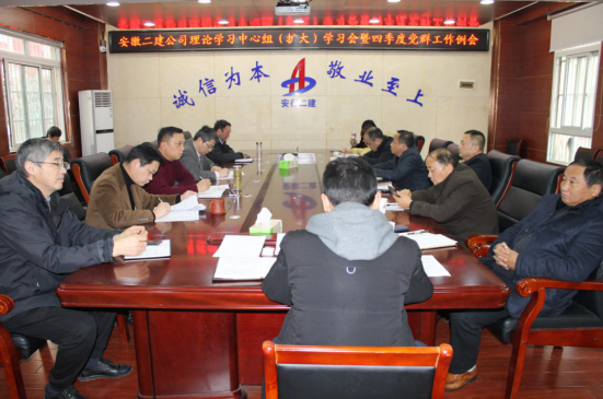 12月11日下午,安徽二建公司召開黨委理論學(xué)習(xí)中心組(擴大)暨四季度黨群工作會,公司領(lǐng)導(dǎo)班子、黨委工作部、紀(jì)檢監(jiān)察室、工會、團委、信訪保衛(wèi)部、人力資源部主要負(fù)責(zé)人,所屬各黨支部書記參加。會議由黨委副書記、紀(jì)委書記仇多維主持。