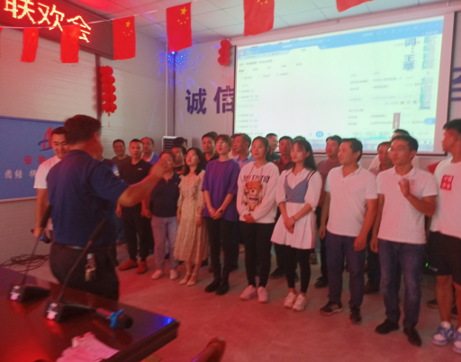 10月1日是我們偉大祖國71周年華誕,同時(shí)又是一年一度的傳統(tǒng)中秋佳節(jié)。四分公司黨支部書記董建民一行前往江西萍鄉(xiāng)和上栗兩個(gè)項(xiàng)目開展聯(lián)歡會(huì)。聯(lián)歡會(huì)所有節(jié)目均為員工自編、自拍、自導(dǎo)、自演,是分公司首次迎兩節(jié)在項(xiàng)目舉辦聯(lián)歡活動(dòng),為員工提供了一個(gè)展示風(fēng)采的舞臺(tái),讓大家在娛樂的同時(shí)加強(qiáng)彼此之間的溝通和交流。