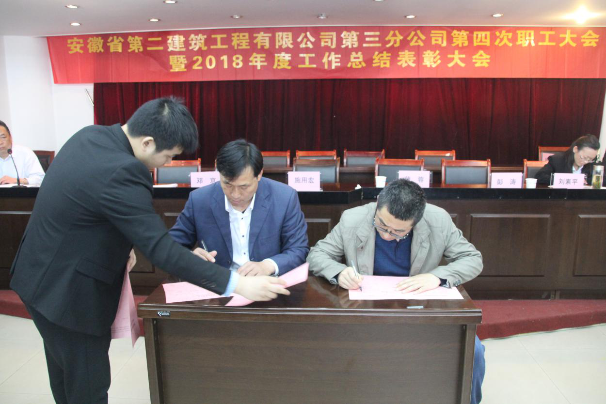 會(huì)上,公司黨委工作部對(duì)分公司領(lǐng)導(dǎo)班子及班子成員進(jìn)行民主測(cè)評(píng),對(duì)后備干部進(jìn)行民主推薦;馬福才經(jīng)理和各項(xiàng)目經(jīng)理簽訂《目標(biāo)責(zé)任狀》、《勞動(dòng)競(jìng)賽責(zé)任狀》,為各責(zé)任主體完成全年指標(biāo)下達(dá)了“任務(wù)書(shū)”、確立了考核依據(jù);對(duì)過(guò)去一年在各自崗位上作出突出貢獻(xiàn)的先進(jìn)科室、項(xiàng)目及個(gè)人進(jìn)行表彰,更好地發(fā)揮了榜樣引領(lǐng)作用,促進(jìn)形成崇尚先進(jìn)、學(xué)習(xí)先進(jìn)、爭(zhēng)當(dāng)先進(jìn)的良好氛圍。