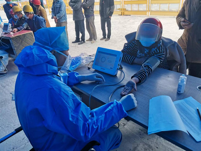 檢查主要包括測(cè)量血壓、胸外聽(tīng)診、心率檢查及醫(yī)療咨詢等,醫(yī)護(hù)人員就防疫、防暑、應(yīng)急措施等知識(shí)進(jìn)行普及講解,提醒工友們注意飲食起居,做好自我防護(hù)。