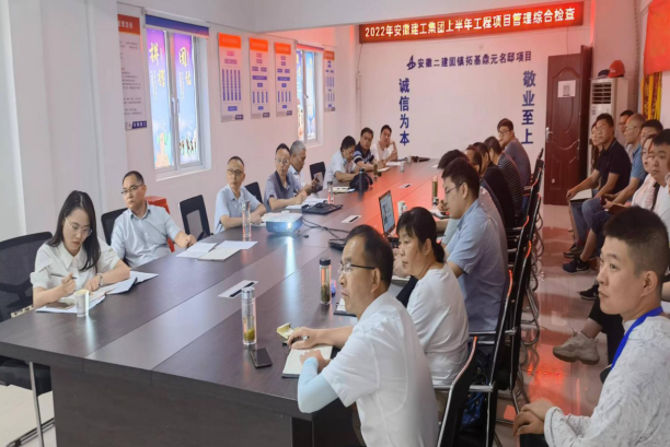為扎實(shí)推進(jìn)“項(xiàng)目基礎(chǔ)管理年”活動(dòng),以檢查促落實(shí)、促整改、促提升,2022年6月28日,建工股份公司工程管理部(安全監(jiān)察局)督查員范毓慶一行8人赴安徽二建固鎮(zhèn)拓基鼎元名邸項(xiàng)目,開(kāi)展上半年工程項(xiàng)目管理綜合檢查工作。安徽二建公司黨委委員、副總經(jīng)理葉和永,總經(jīng)理助理、第一分公司經(jīng)理崔書(shū)斌及公司相關(guān)職能部門(mén)負(fù)責(zé)人參加。